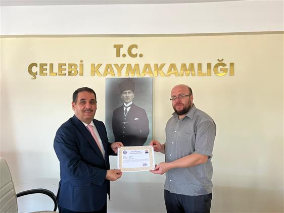 İlçe Müftülüğümüz VHKİ Adem ELİTOK, görev süresi boyunca üç başarı belgesi alması nedeniyle Kaymakamlık Makamınca verilen '' Üstün Başarı Belgesi'' ni İlçe Müftümüz Atilla AKDOĞAN'ın elinden aldı. Personelimize başarılar dileriz.