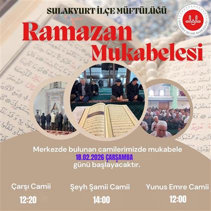 Sulakyurt İlçe Müftülüğümüze bağlı merkez ve köy camilerimizde, bu Ramazan ayında da Kur’an-ı Kerim bereketi yaşanacaktır.